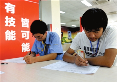昨天,在电梯维修工大赛环节,参赛选手认真作答。