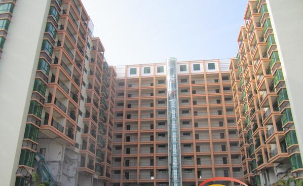 在三亚市凤凰镇西瓜村西侧,两栋高13层的凹字形建筑紧挨着,清一色绿玻璃和粉刷一新的外墙,加上凹形建筑中央的观光电梯,从远处看去非常壮观、气派。但华丽的外表下依然无法掩盖其违法建筑的真实身份。