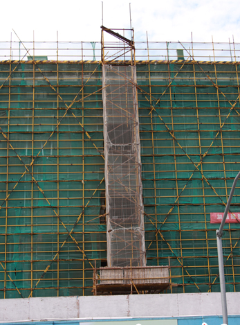今天上午7点50分左右,杨浦区国和路701号一施工工地发生惨剧,一名工人不幸被电梯砸到,当场死亡。