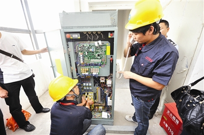 记者、业主、技术人员体验电梯故障