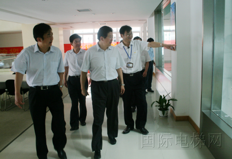 蒋宏坤书记一行乘坐观光电梯由参观通道查看了扶梯生产车间,他关心地询问扶梯和电梯的产能比,并对康力重视企业文化建设表示赞赏。