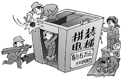 据电梯销售商介绍,收购一台报废电梯的价格为5000至两万元,拼装后转手价格高达6万到8万元,而国产普通电梯的价格在12万元左右。