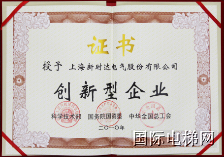 11月25日,新时达收到了由科学技术部、国务院国资委、全国总工会联合颁发的国家创新型企业证书。