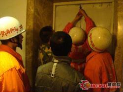 消防官兵到达现场后经侦察发现,故障电梯厢停在1层与2层之间的夹层中,由于楼层建筑结构比较复杂,电梯悬停处是夹层,并没有出口,需要将电梯迫降到上一层然后将被困人员解救出来,现场指挥员立即命令一位经验丰富的班长与小区电梯维修工到达楼顶对电梯进行迫升作业,随后在消防官兵的配合下,电梯维修工在电梯房内运用盘绳的方法使电梯一点一点慢慢的迫升到二层,然后救援战士利用专业工具将电梯门打开,成功营救出了这12名被困群众。