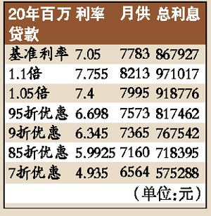 按照目前的基准利率7.05计算,即使恢复基准后的首套房利率,相比之前的7折,月供也增加了1219元/月,总利息增加幅度达到了29万元以上。以一套150万左右的房产,首付50万,贷款100万。增加的利息相当于房价上涨了20%,一定程度上也就是说,如果执行目前的首套房基准,房价必须下调20%左右,刚需购房者才会得到部分实惠。