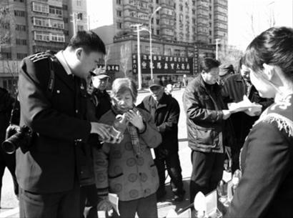 沈阳市质监局工作人员向市民介绍食品安全常识。