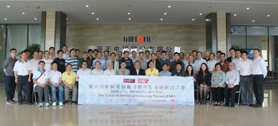 2012年4月14日上午,由郭海生主席率领的国际电梯工程师协会(香港-中国分会)代表团莅临菱王电梯考察、交流,广东省电梯技术学会史信芳理事长等领导陪同参观。