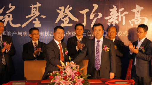 2012年4月25日,沈阳富兴安泰房地产开发有限公司与奥的斯电梯(中国)有限公司签署战略合作协议。根据协议,奥的斯将向富兴安泰的依云首府项目提供154部直、扶梯。沈阳特种设备检测研究院主管电梯部长冯辉、李洪,于洪区迎宾路街道办事处书记金在万,沈阳富兴安泰房地产开发有限公司董事长鲍晓龙以及奥的斯电梯(中国)投资有限公司新梯运营部长黄伟华出席签约仪式。