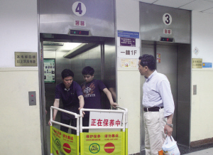 维修人员说,每周六周日,他们都会对医院电梯做保养。“今天我先去电梯里检查了一遍,然后回机房把2号电梯的电断掉了,准备做保养,但机房里没有监控画面,我也不知道有人走进去了……”