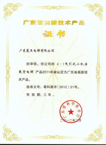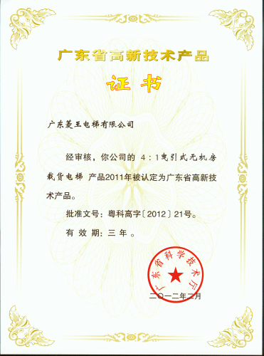 近日,广东菱王电梯有限公司攻克前沿节能科技瓶颈的两项明星产品——“4:1曳引式小机房载货电梯”和“4:1曳引式无机房载货电梯”再添殊荣,被广东省科学技术厅认定为“广东省高新技术产品”。