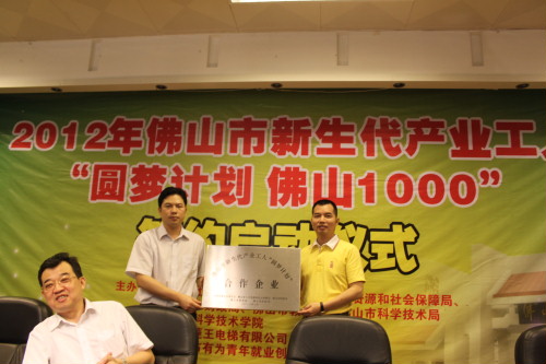 本次活动的与会嘉宾还有共青团佛山市委副书记叶敏坚、佛山科学技术学院副校长范彦斌、佛山市科学技术局副局长周佩珊、佛山市财政局科长何少红、佛山市人力资源和社会保障局副科长吕长峰、佛山市教育局副科长刘穗德。会上,叶敏坚副书记向梁永标董事长颁发了2012年新生代产业工人“圆梦计划 佛山