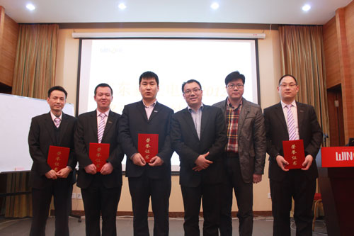 会上,谢总和邹总为2012年度任务完成率的冠、亚、季军及销量最高团队分别颁发了奖金和荣誉证书,并鼓励他们以更激昂的斗志、更务实的作风扎实工作,来年取得更辉煌的成就!