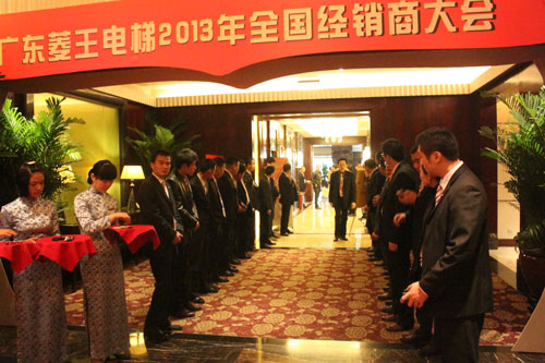 2013年1月13日,以“聚势•共赢未来”为主题的广东菱王电梯有限公司2013年全国经销商大会在武汉锦江国际大酒店隆重举行。作为近十年来中国电梯行业成长速度最快的电梯企业之一,盛会得到了行业协会、相关合作伙伴及媒体的高度关注。中国电梯协会副秘书长、《中国电梯》杂志社社长/主编、机械工业职业技能鉴定电梯行业分中心主任、中国建筑科学研究院建筑机械化研究分院院长助理李增健,湖北省质量技术监督局特设处副处长王竟,武汉市质量技术监督局特设处处长周小光等行业专家领导以及全国各省市的经销商等300多人出席了活动,一同见证这充满激情的时刻。