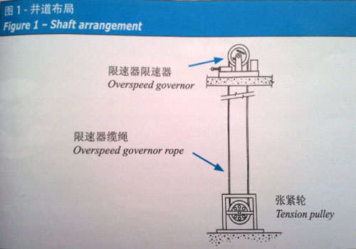 所以,如果我们想象一个井道的水平剖面,为了不影响轿厢运行,限速器只能安装在轿厢的旁边。