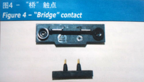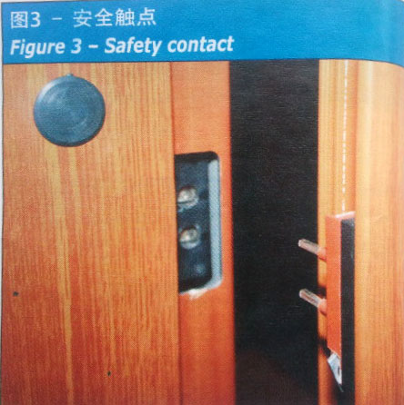 安全触点趕一个处于打开状态的触点, 防止轿厢在危险状况下运行。通过正向分离触点元件启动轿厢运行。层门锁定装置中最常用的安全触点称为“活动桥”,其运行情况可参阅图4。