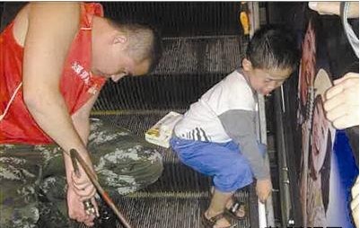 据南城消防中队的王队长介绍,在上下扶手电梯时,小孩子很喜欢用手触碰脚边有毛绒的缝隙,并因此经常发生事故。他提醒家长在乘坐电梯时,一定要看好自己的孩子。