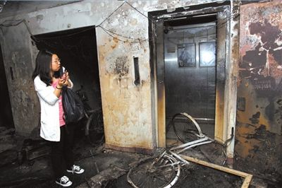 昨天凌晨2点40分,嘉园三里2号楼已经恢复平静,南侧楼道里仍有救火之后留下的大片水渍。据值班员介绍,等候间内一直有住户堆放各种杂物,起火后大部分都烧成了灰烬,多扇玻璃破碎,墙壁大部分被熏成黑色。