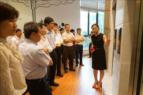 座谈会后,调研组一行在邹总的陪同下参观菱王电梯展厅。邹总重点介绍了公司的九大系列产品以及自主研发的电梯绿色、环保、节能技术。调研组对菱王电梯始终高举民族品牌旗帜、自发提升企业竞争力的行动表示高度的赞赏。