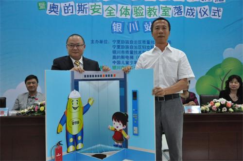 “在扶梯上追跑打闹,这种行为对不对?”,“如果遇到火警,我们还能坐电梯吗?”……今天下午,由宁夏质量技术监督局、中国儿童少年基金会、奥的斯电梯(中国)投资有限公司共同举办的“奥的斯儿童安全公益图书捐赠暨安全体验教室落成仪式”在宁夏银川市第二十一小学举办。这标志着安全乘梯教育首次走进中国西北部。