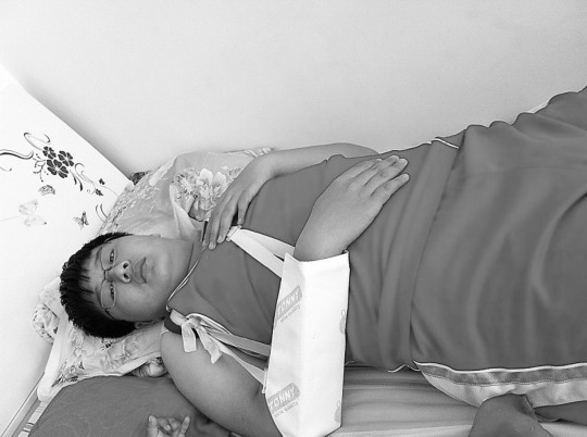 7月6日下午,记者来到金鼎领域5号楼1单元14层王先生家中时,看到他的儿子小龙(化名)正卧床休息,右肩和手臂打着固定夹板和固定带。