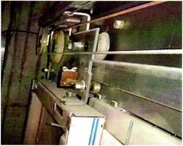 从图2不难看出,门导轨下部的偏心轴除了满足轴 的上部紧贴导轨上部防止层门左右摆动之外,在整个层 门运行过程中,偏心轴的外侧扣在层门上坎的导向架的 反转钢轨内侧,对由于野蛮外力作用在层门上造成的层 门脱落事故起到了很好的防范作用。此项设计简单实用, 构造科学,成本也比较低,笔者认为值得推广。