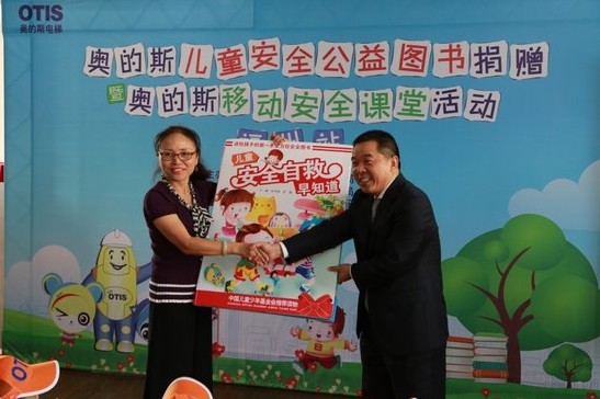 活动现场,奥的斯向祥坂小学捐赠了《儿童安全自救早知道》图书。该书是在国家质量监督检验检疫总局特种设备监察局指导下,由奥的斯公司联合中国儿童少年基 金会和希望出版社共同推出的国内首部全方位儿童安全教育公益图书,主要面向3-7岁低龄幼儿,涵盖了家庭、外出及乘梯等日常生活安全的信息与常识。该书已 被国家新闻出版广电总局评为2013年“向全国青少年推荐百种优秀图书”,其实用的内容、通俗的讲解、活泼的形式受到了小学生们的欢迎。