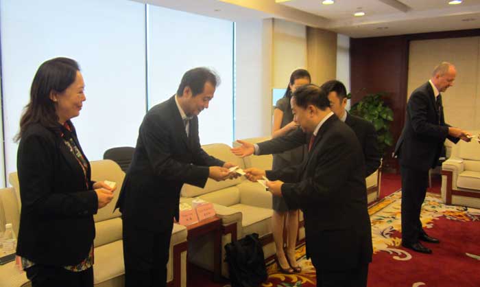 2013 年10月16日,在重庆两江新区管委会外事厅,澳大利亚贸易委员会东亚成长市场总经理凌德智(David Landers)先生、澳大利亚贸易委员会中国区总经理柯迈高(Michael Clifton)先生和澳大利亚驻成都总领事馆商务领事唐杰夫(Jeff Turner)先生与重庆两江新区管委会副主任郝明先生、重庆两江新区国际经济合作办公室主任叶兴国等进行了长达1个半小时的外事交流。
