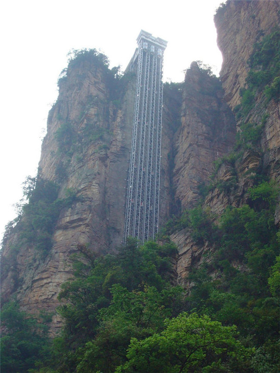 如果你在一本有着相当丰富词条的字典中查询“一流的直觉互动”(state of art intuitive interaction),你就会看到一张QT悉尼酒店的电梯图。它可以感知电梯里共有多少个人,然后根据人数播放音乐。比如说,如果只有一个人,它会放 比较舒缓的歌曲(可能是阿黛尔的歌哦);如果是一大群人的话,它就很有可能放凯蒂·派瑞的歌(宴会歌曲)。有时候,一群互不相识的陌生人听着歌曲会不知不 觉跳起来呢。 白龙升降机(中国,张家界) 位于张家界悬崖一侧的白龙升降机总是格外引人注目。该升降机高达1070英尺(约合326米),有着速度快,容量大,且为双层的特点,从技术角度讲它已经成为世界遗产了。不过,更为重要的是,在上面能看到张家界森林公园无与伦比的自然风光哦。