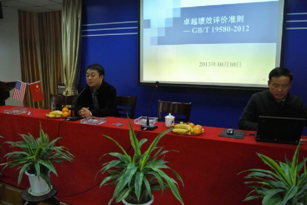 更好的推进《卓越绩效评价准则》的宣传贯彻, 有效实施“卓越绩效管理模式”,全面提升公司质量管理水平,2013年11月14日上午,公司在办公楼二楼会议室开展了《卓越绩效评价准则及实施培训》, 公司领导佴秀成、郑鑫,各职能部门负责人与制造车间、研发部、采供部等相关员工20余人参加了此次培训。