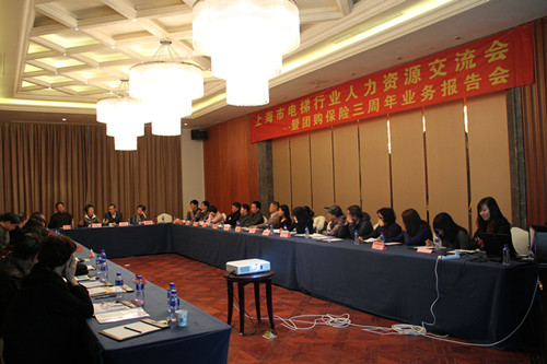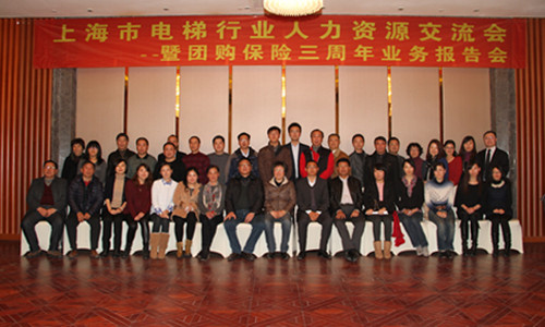 2013年11月28日,幸福人寿上海分公司与上海市电梯行业协会在昆山皇冠国际会展洒店联合举办“上海市电梯行业人力资源交流会塈团购保险三周年业务报告会”。三十多家电梯企业的总经理和人力资源负责人参加了会议,会议由梅水麟副会长主持。