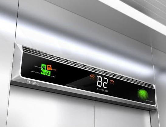 现代电梯公司于5月1日表示,世界首例通过附着在升降机下端的传感器识别乘客的脚部动作、启动电梯按钮的“无触觉脚按钮”研发成功。当天还展示了带有这种按钮的“NEW YZER”电梯。该款电梯(9人乘标准)的升降道横向1850毫米、纵向1570毫米,为韩国国内尺寸最小的电梯。尺寸越小越可以节省建筑费用,可以有效利用建筑空间。在此基础上取消机房,使得费用进一步减少。