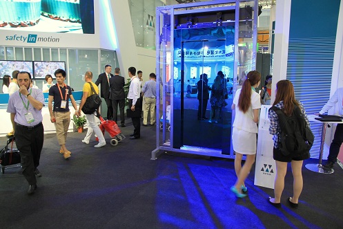 新型技术区域, 您除了看到威特最新的厅门解决方案——以Hydra厅门为原型,满足En81-20/50指令要求的HYDRA Evo;还有基于创新型轿壁固定方式的新模块化电梯轿厢MCS1; 最亮眼的莫过适用于高雅以及技术性较高环境的方形透明全景观光轿厢。