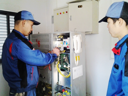 “还有另外两同事也已经到了,我们快点过去吧。”没有多余寒暄,戴家西带着记者马不停蹄地向一栋居民楼走去。路上,戴家西不忘向记者“授课”:电梯从外到内共三道门,分别叫做厅门、安全触版和轿门;载人移动上下的部分叫做轿厢;供轿厢上下动的空间叫做井道……