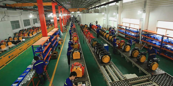 【有条不紊的永磁同步曳引机总装配生产线】