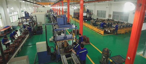 【整齐有序的永磁同步曳引机装配生产线】