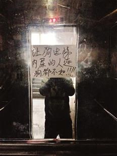 李先生介绍,11日晚上,他回家时注意到电梯里有一摊狗尿,气味令人作呕。次日上午,他出门时,发现有人往电梯里喷了不少香水,但尿骚味还是特别浓,两股味一混合,更难闻。当天下午他回家时,一进电梯,就看到里面贴了一张告示:“让狗电梯内尿的人连狗都不如!”