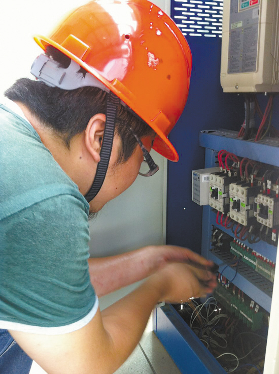 昨日上午,在2015年台州市电梯维修工职业技能竞赛的决赛现场,台州富泰电梯安装服务有限公司的员工金新雨正在一台“故障”电梯前挥汗如雨。