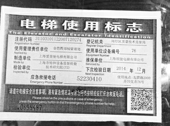 而采访中,居民直陈这部电梯平日缺少维护保养。记者看到,“病梯”内“电梯使用标志”牌子显示,该电梯维保单位是上海顺捷电梯有限公司,下次检验日期是2014年12月(见图读者供图)。为什么预定的检验时间过去7个月了仍未进行?居民对物业公司和维保单位提出批评:“缺少‘善待’的电梯,怎么可能不频频发生问题!”