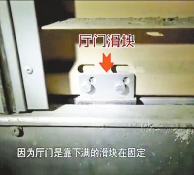 厅门下方固定靠滑块,若受到大的冲击,容易撞开门