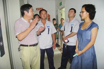 “在一楼电梯间电梯门旁边有一个专门的按钮,是用来进行火灾报警,并且强制电梯停止运行的按钮,一旦发生火灾事故,物业员工与业主都应该掌握按下这个按钮的方法,首先进行自救,把危险降低到最低。”华国庆一边介绍,一边与所有业主乘电梯到一楼,现场演示了这个报警按钮的使用方法。“这个按钮平时是设置在一小块玻璃窗内,发生突发事件时,业主应第一时间砸破玻璃,按下按钮,迫停电梯。”华国庆说。