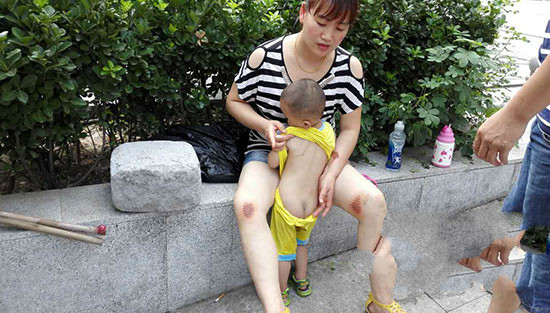 “吓死我了,孩子差点命都没了。”8月17日上午,39岁的王凤玲惊魂未定。王凤玲的脸上、手上、腿上,有多处伤口。她1岁9个月的儿子嘴唇上、背上、屁股上也是多处受伤。