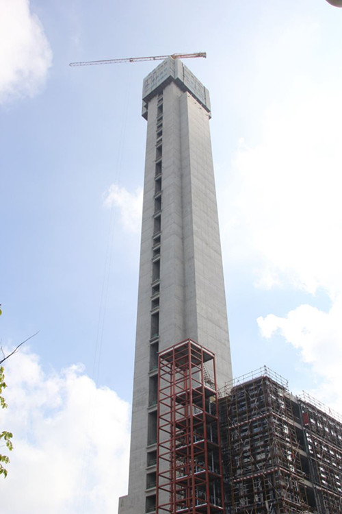 自2013年3月12日奠基,经过两年半时间的高质量、高标准工程建设,目前新试验塔主体结构已建成218米,立身塔下,抬头仰视,压迫感接踵而来,如同置身一种空间的幻境。试验塔现场施工正热火朝天的进行中,康力电梯将全力抓好工程建设的每一个环节,保证工程建设质量和进度,预计将在11月封顶竣工,届时将打造出世界电梯行业试验塔一流精品工程。