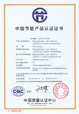 中国质量认证中心(CQC)是由国家质量监督检验检疫总局设立,被多国政府和多个国际权威组织认可的第三方专业认证机构,是全国最大最具权威性的认证机构。CQC证书受到国际认证机构的广泛互认,这意味着得到认证的产品的指标相当于国际先进水平。2015年5月,包括95个不同规格型号的蒂森电梯永磁同步无齿轮曳引机均获得了来自中国质量认证中心的《中国节能产品认证证书》。