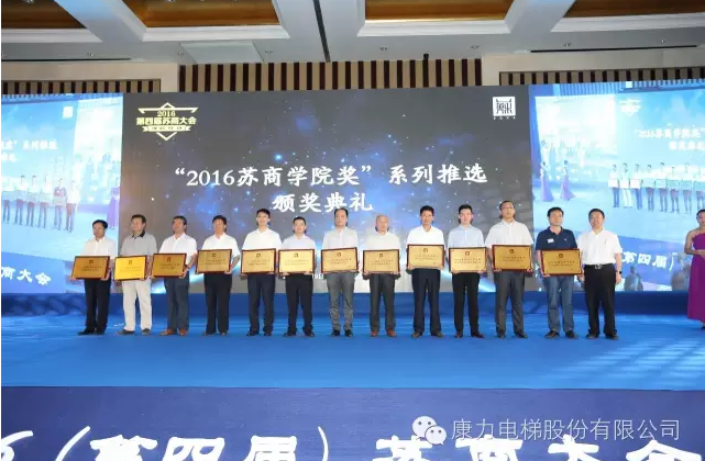 2016年7月9日,由苏商发展促进会(以下简称“苏商会”)主办的“2016(第四届)苏商大会”在宿迁隆重举行,来自海内外的600名苏商出席大会。康力电梯等40余家苏商企业荣登“2016苏商地标型企业”榜单。