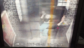 监控视频显示,当天晚上7点39分左右,陈姓老人进入电梯内,在多次按按钮无效后,陈姓老人有对着玻璃外咆哮的迹象,并用脚踹电梯门。