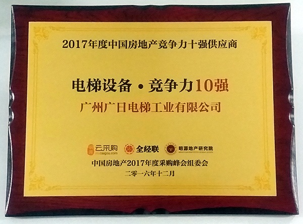 12月22日,由明源云采购、全经联、明源地产研究院联合举办的2017年度中国房地产采购峰会暨供应商行业竞争力十强颁奖盛典在深圳隆重举行。广日电梯作为电梯行业代表受邀参加此次盛会,并凭借优质的产品和完善的一站式电梯服务,荣获《2017年度中国房地产竞争力十强供应商•电梯设备•竞争力十强》称号。