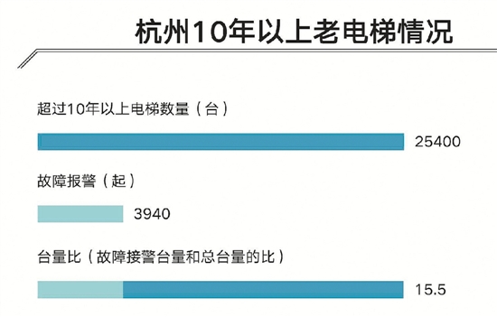 “10年以上老电梯的确更加容易发生故障,需要得到更多维修。”张文介绍,杭州的老电梯数量为25400台。