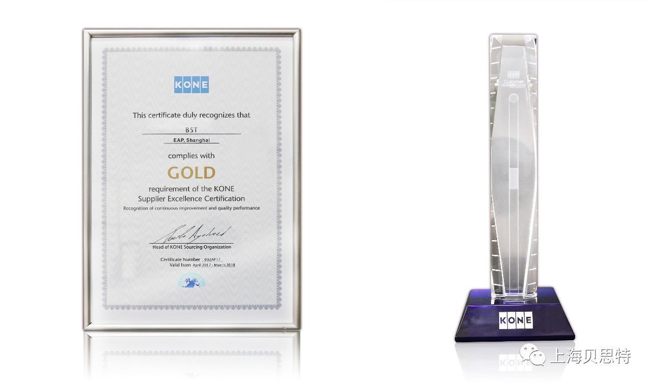 上海贝思特与通力电梯已携手合作12个年头,贝思特优质的产品保证以及完善的服务持续助力通力电梯的安全运行。通力“金牌供应商”奖项按照严格的评比标准,此次共评出8家金牌供应商,而上海贝思特是其中唯一一家中国本土品牌。这不仅标志着贝思特的产品受到了高度的认可,也是品牌价值不断提升的象征。