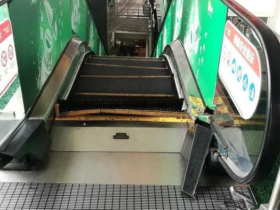 2017年3月21日,杭州,一名陈姓先生在乘坐一家超市的手扶电梯时,刚下来就听到一声巨响,此时他发现自己所乘坐的电梯炸开了。