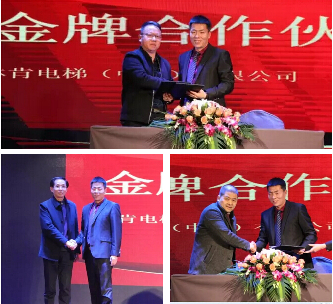林肯电梯总裁盛文龙先生致辞并做2017年企业展望,十周年庆签约金牌合作伙伴,会议着重对林肯公司的新产品LC/(M)P8000-S和立体停车库等进行了介绍。
